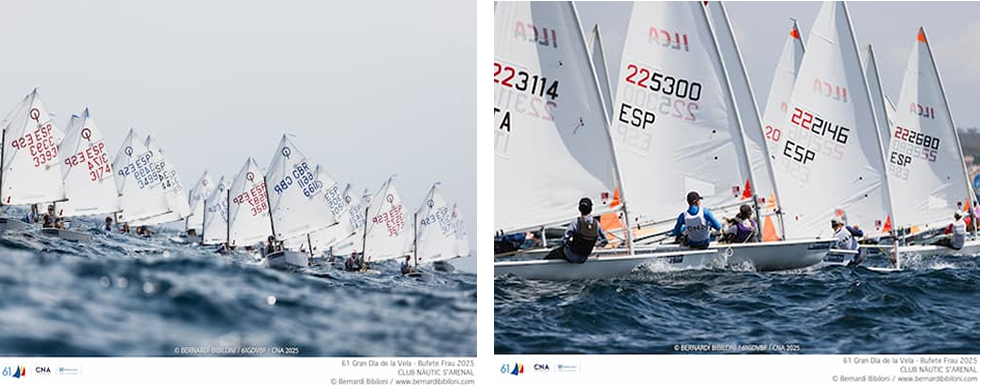 La segunda jornada de la 61ª edición del Gran Día de la Vela – Bufete Frau ofreció espectáculo en la Bahía de Palma, con más de 500 regatistas en acción en las clases Optimist, 420 e ILCA 4. El viento acompañó y permitió recuperar pruebas pendientes, perfilando ya las primeras posiciones en la lucha por el podio. El joven Jan Palou (RCNP) sorprendió al liderar la clasificación absoluta de Optimist, mientras que los hermanos Lucas y Nicolás Montoya (CNA) se colocaron al frente en 420.