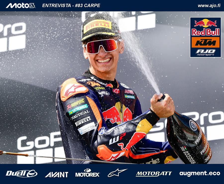 Álvaro Carpe: “Mi adaptación a la categoría fue muy rápida y más en este equipo, que es como una familia” El actual líder de la clasificación de los rookies en Moto3 valora su gran aterrizaje en el Mundial y desgrana