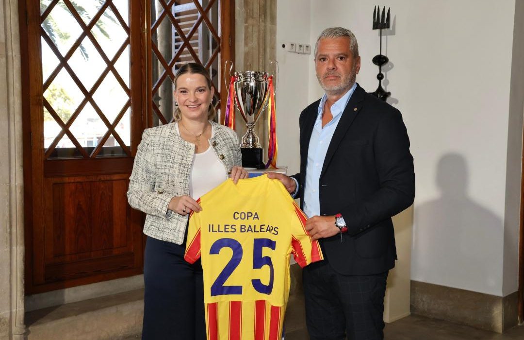 El Consolat de Mar ha sido hoy el escenario de la presentación oficial de la Final de la Copa Islas Baleares y del trofeo que se entregará al campeón. El acto ha contado con la presencia de la presidenta del Gobierno de las Islas Baleares, Margalida Prohens y del presidente de la Federación de Fútbol de las Islas Baleares (FFIB), Jordi Horrach.