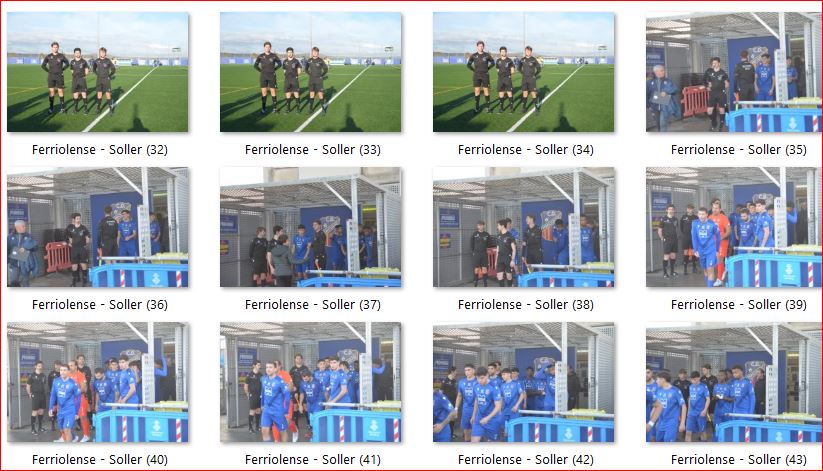 Durante la primera parte, el conjunto visitante mostró mayor iniciativa y control del juego. El CF Sóller logró dominar el ritmo del partido, moviendo el balón con criterio y tratando de generar peligro desde el centro del campo. Sin embargo, el buen trabajo defensivo del Ferriolense A mantuvo el marcador sin cambios durante buena parte del primer tiempo.