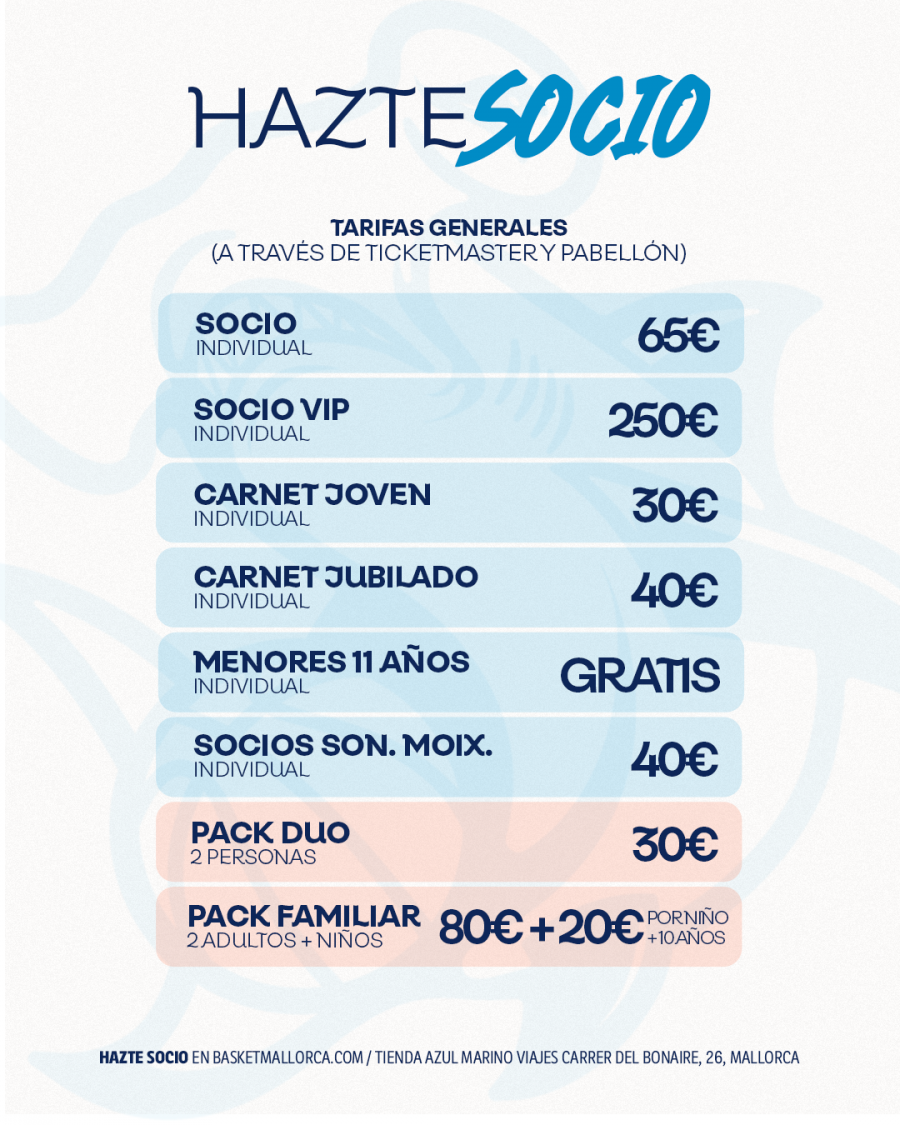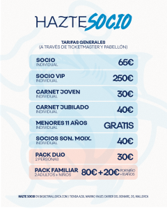 La entidad dispone de hasta 7 modalidades de abono; General, Júnior, Sénior, VIP, Monoparental, Familiar y Abono Son Moix.