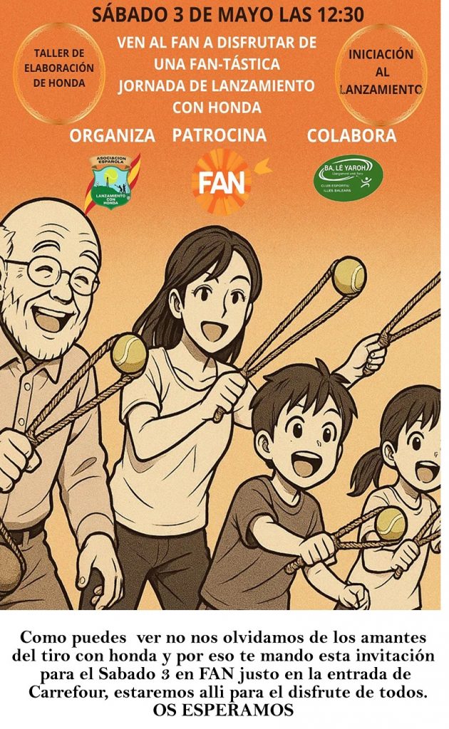 Este sábado 3 de mayo, los amantes de la historia, el deporte y las tradiciones autóctonas tienen una cita ineludible en Palma. La Asociación Española de Lanzamiento con Honda organiza una jornada única en el complejo FAN Mallorca Shopping, junto a la entrada principal de Carrefour, donde se rendirá homenaje a una de las prácticas más antiguas y emblemáticas de las Islas Baleares: el lanzamiento con honda.