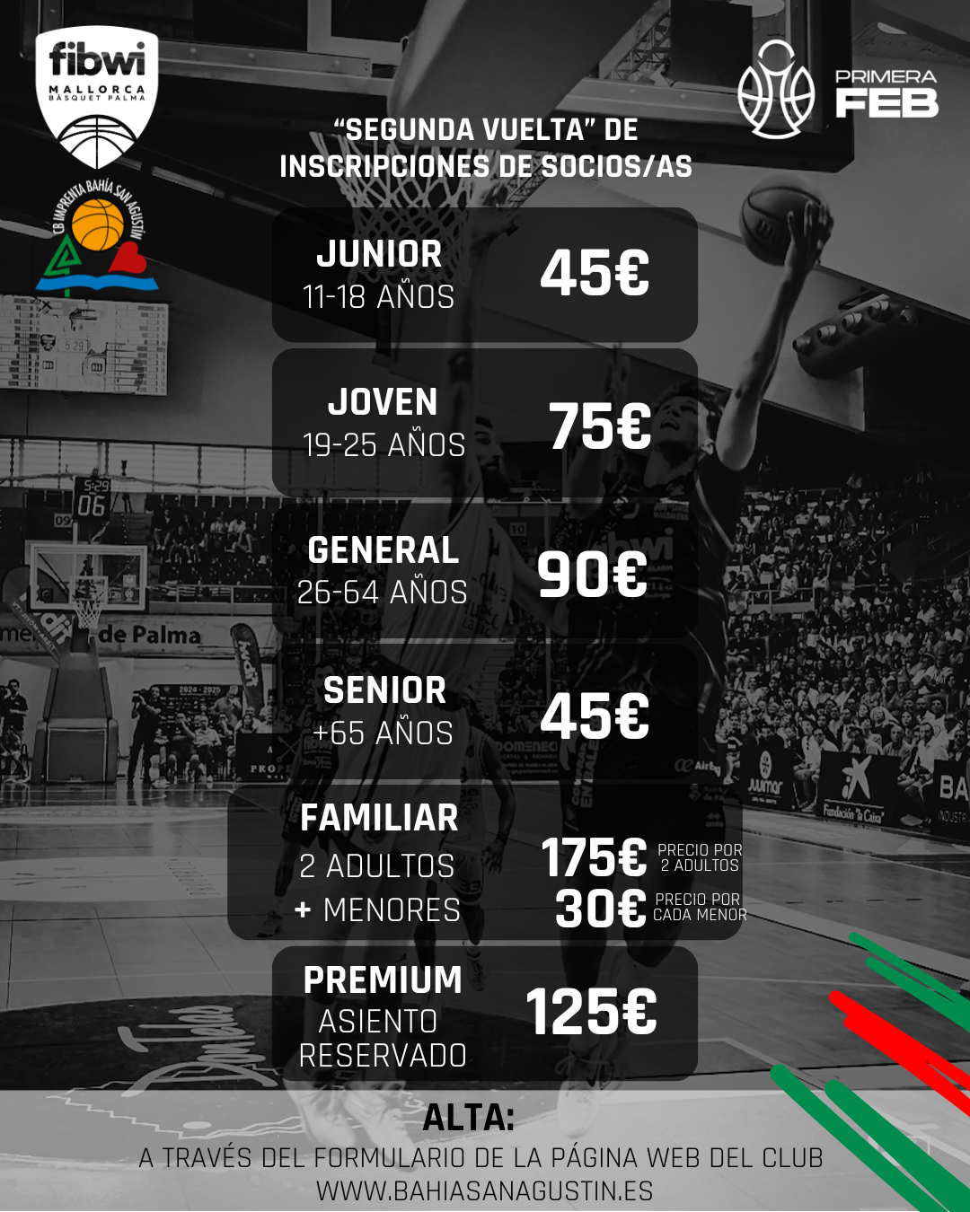Mientras, el club también trabaja de cara a la segunda vuelta de la temporada. Manteniendo el lema de HO DONAREM TOT de su campaña de abonados, el club arranca el segundo tramo de su campaña de socios de cara a esta segunda parte de la temporada y lo hace poniendo a disposición de los aficionados que deseen unirse a la familia del Fibwi Mallorca Bàsquet Palma en esta segunda vuelta con unos precios que oscilan desde los 45 euros hasta los 125 en el caso de los precios de abonos individuales.
