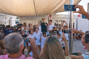 El domingo, en cambio, el viento se hizo esperar. Tras una pausa obligada por la ausencia de brisa, la llegada de un viento del sur permitió celebrar dos pruebas para los grupos amarillo y azul, y otras dos para el grupo D. La jornada estuvo marcada por un ambiente más tranquilo, con condiciones suaves que favorecieron el disfrute de los participantes.