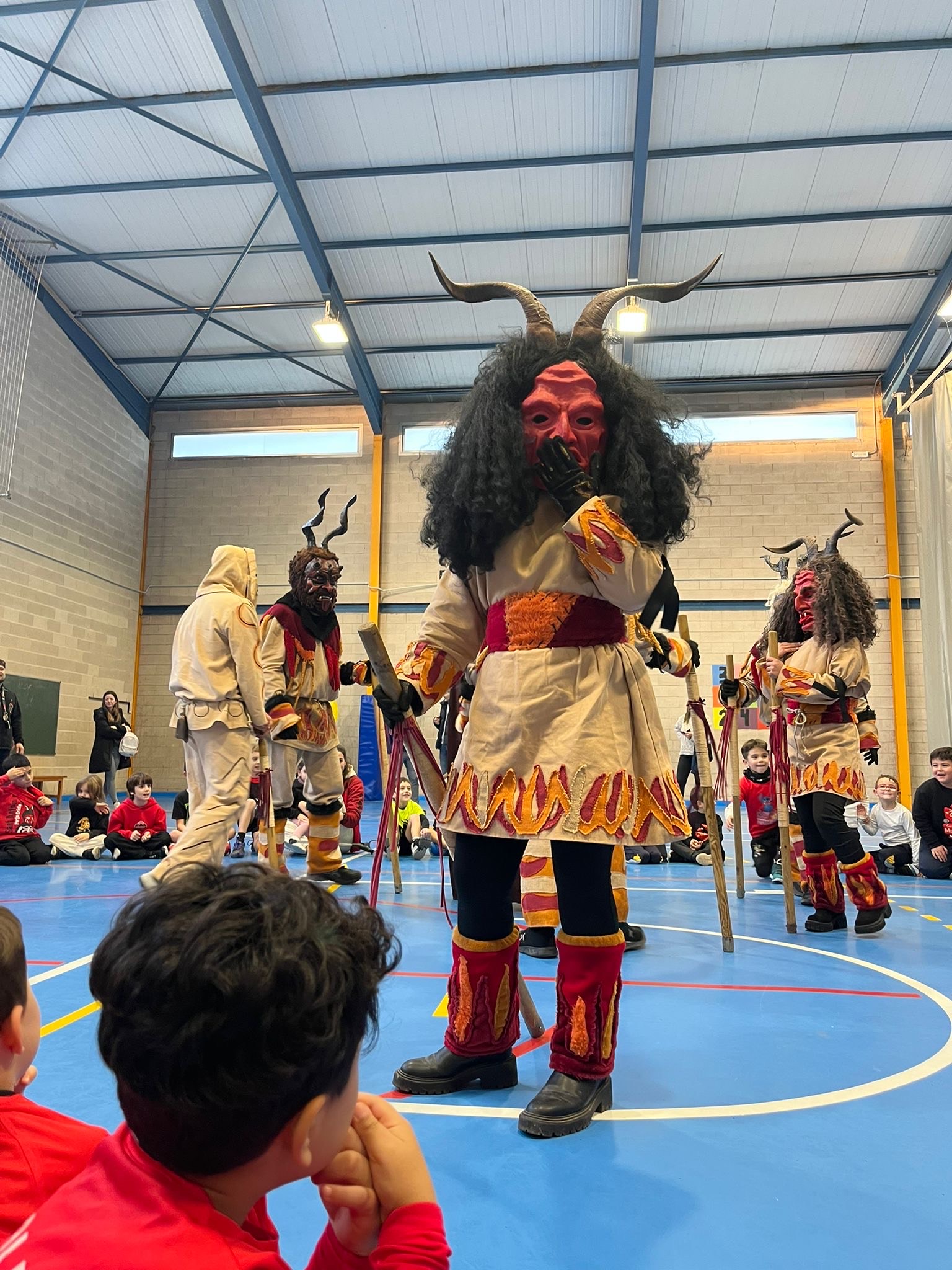 Els Amics de Sant Antoni vingueren a La Salle i els varen fer passar una gran estona amb els seus balls i la seva festa. Els nostres infants pogueren viure moments de molta alegria, molta diversió i estonetes d’una miqueta de por a la pista de bàsquet.