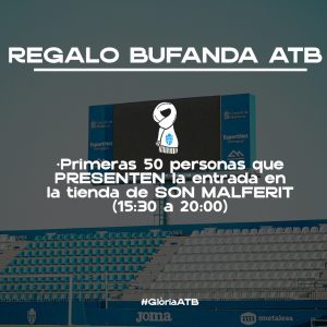 Los 50 primeros socios que compren su entrada de forma presencial recibirán una bufanda de regalo. Deberán enseñar la entrada en la tienda de Son Malferit ( Lunes a Viernes de 15:30H a 20:00H)