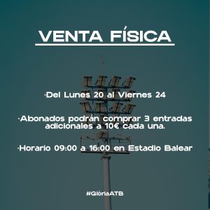 Enlace compra de entradas online: https://atleticobaleares.compralaentrada.com/eventos/