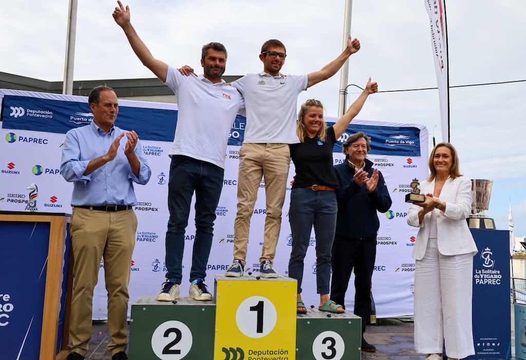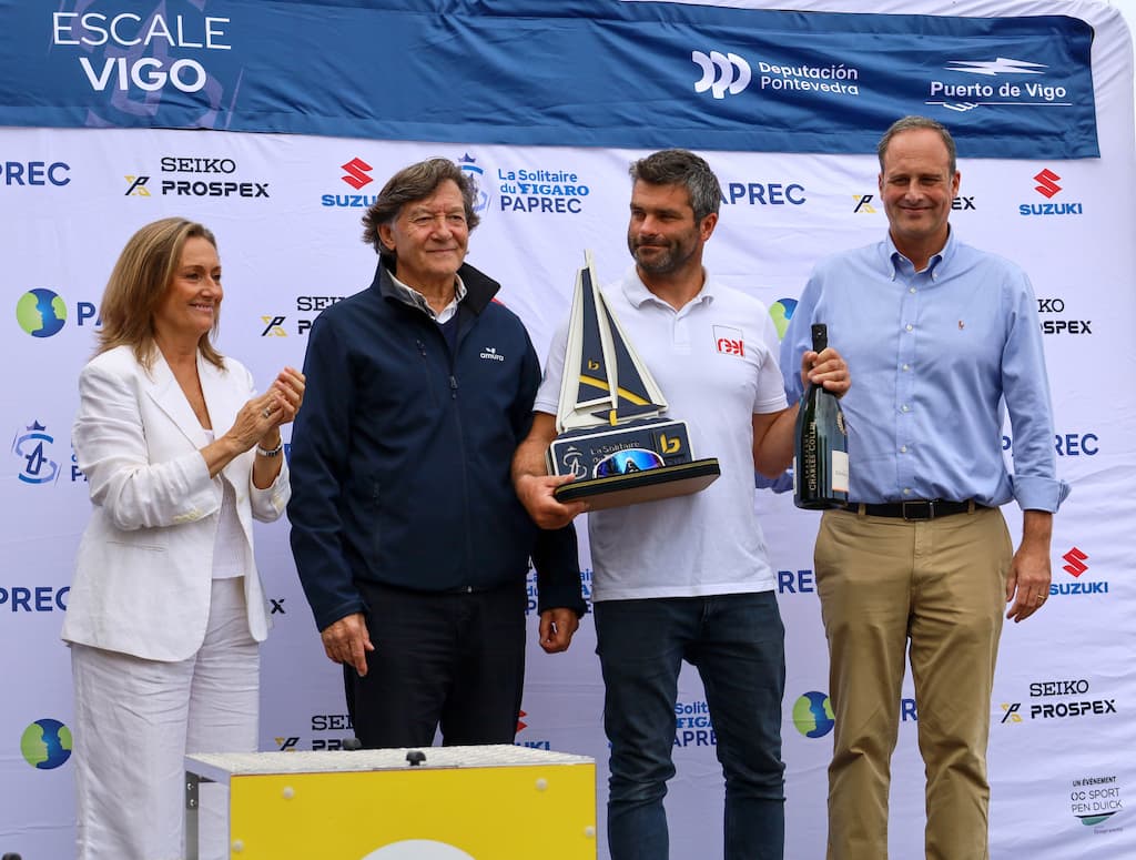 La dársena de Portocultura ha acogido este mediodía la entrega de trofeos de la segunda etapa de La Solitaire du Figaro Paprec, 486 millas (casi 900 km) de navegación que finalizaron anoche en Vigo con la llegada de los 34 barcos participantes en esta 56ª edición.