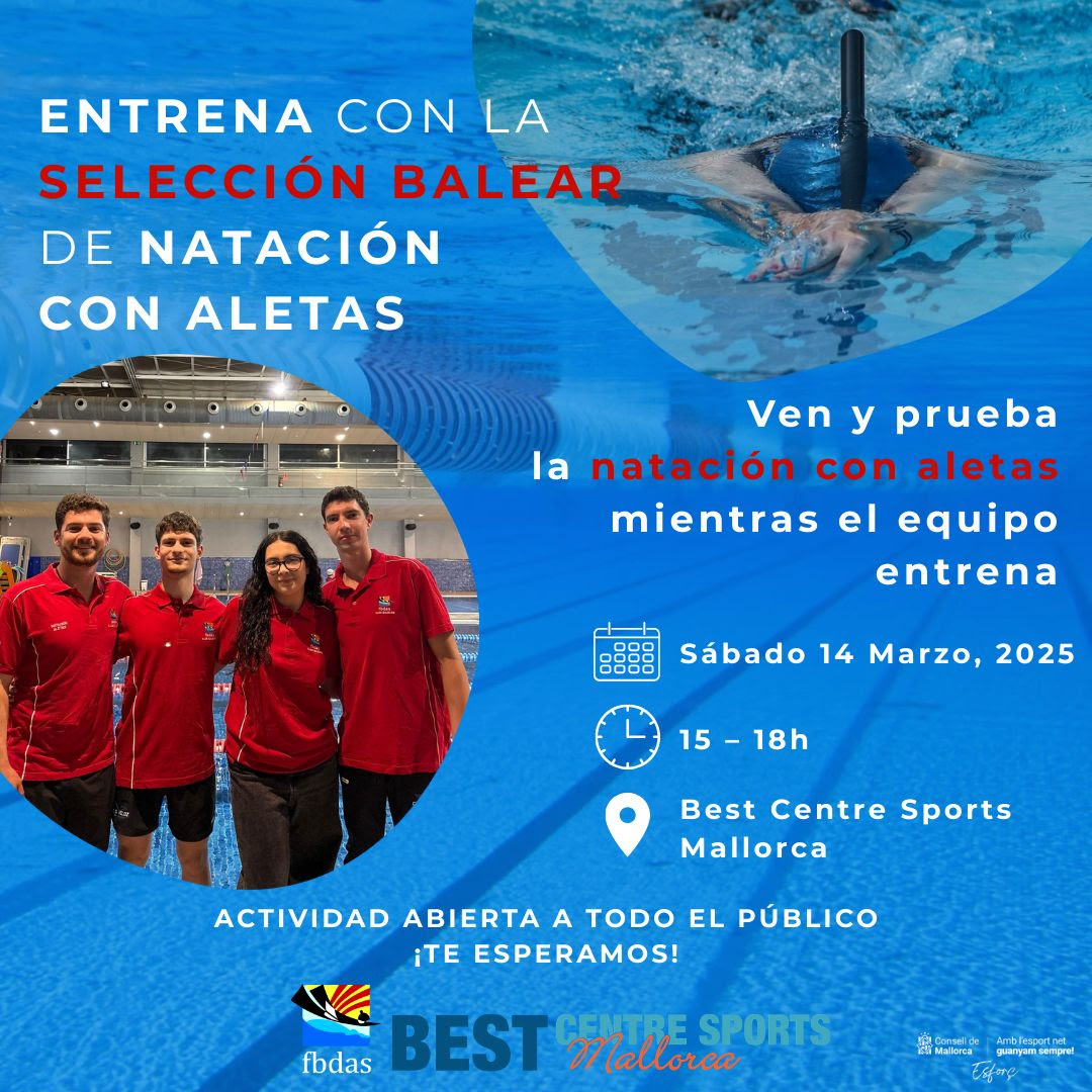 La Federación Balear de Actividades Subacuáticas (FBDAS) organiza una jornada especial de promoción de natación con aletas en Mallorca, en colaboración con Best Centre Sports Mallorca.