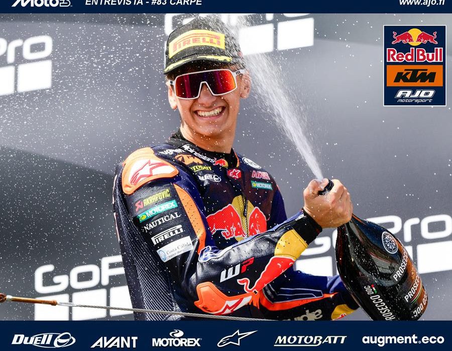 Con todo, el dorsal #83 de Moto3 buscará su primer triunfo en la categoría, así como el título de los jóvenes para completar un 2025 de mucha experiencia y también velocidad. Con el hambre de seguir mostrando al mundo su talento, Carpe ya se prepara para volver a la máxima competición el próximo fin de semana en el Gran Premio de Austria (15-16-17 de agosto), en el que será su primer fin de semana en el Red Bull Ring, la prueba de casa para KTM.