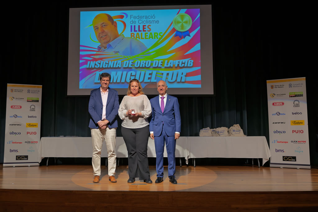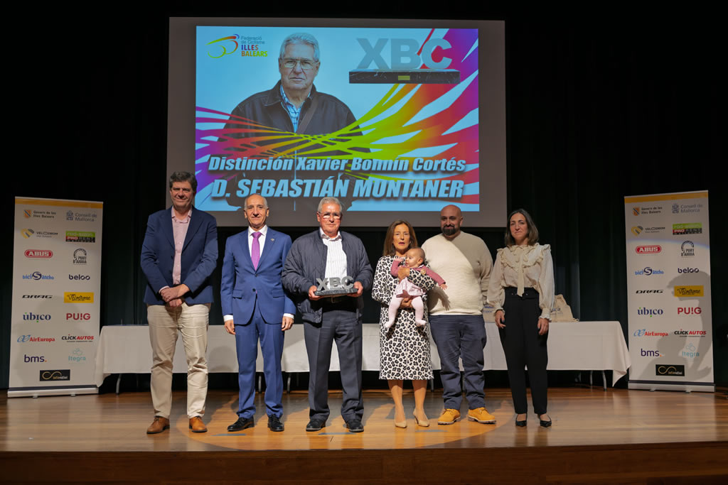 El acto finalizó con la entrega del Premio Xavier Bonnín Cortés a D. Sebastián Muntaner, y con la concesión de la máxima distinción de la Federació de Ciclisme de les Illes Balears, la Insignia de Oro, a D. Miguel Tur.
