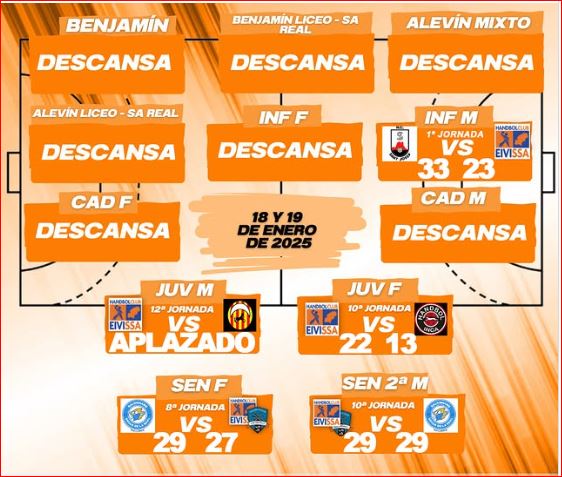 Handbol Club Eivissa. Resultados de la jornada, 18 y 19 de Enero