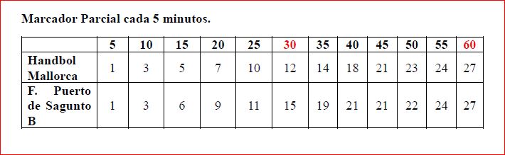 HANDBOL MALLORCA 27 VS F. PUERTO DE SAGUNTO B 27