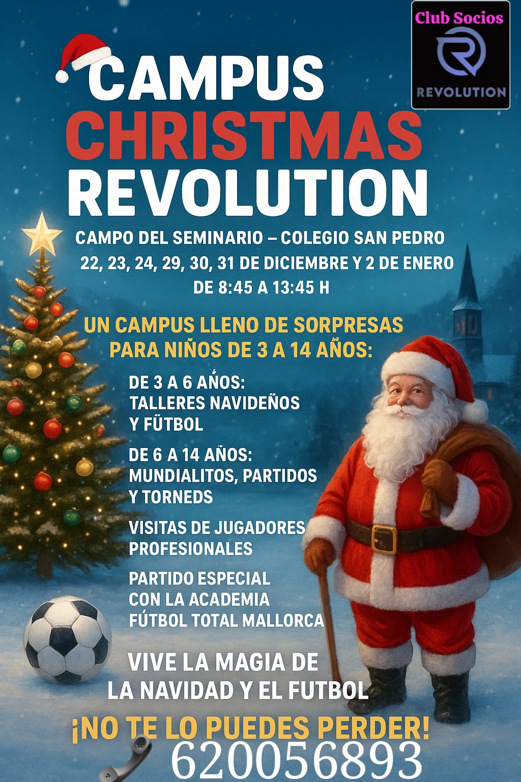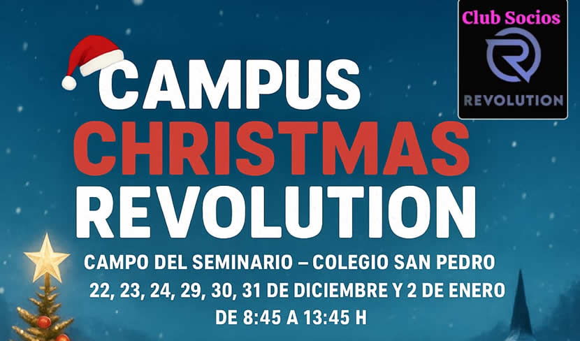 Apúntalo al prestigioso CAMPUS CHRISTMAS REVOLUTION que se celebrará los días 22-23-24-29-30-31 de diciembre y el 2 de enero en el campo de Seminario-Colegio San Pedro de 8.45 h a 13.45 horas.