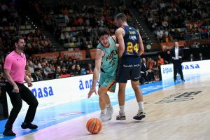 Jesús Carralero con cinco puntos, Joan Feliu con una bandeja imperial y Tray Hollowell con tres triples mágicos capitanearon las ofensivas del bando isleño. El conjunto turquesa consiguió una sólida renta de nueve puntos, 7-16. La calidad técnica de Paul Jorgensen en el perímetro y la notable dirección del juego de Dídac Cuevas guiaron la reacción local. Adrián Chapela obsequió a Golden Dike con un presente en forma de asistencia para establecer el 19-20 en el luminoso, resultado con el que se cerró el primer parcial.