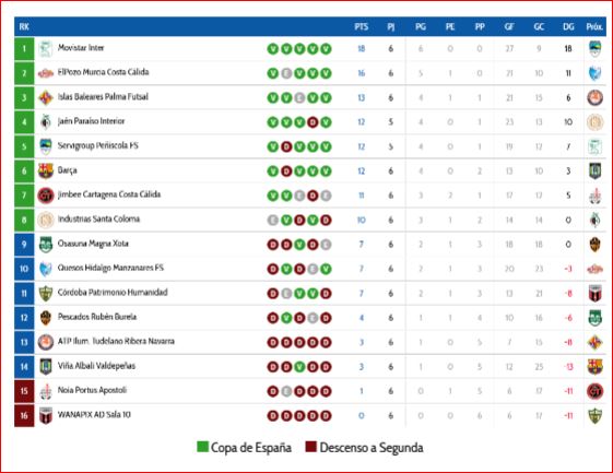 HORARIOS Y CLASIFICACIÓN PRIMERA DIVISIÓN