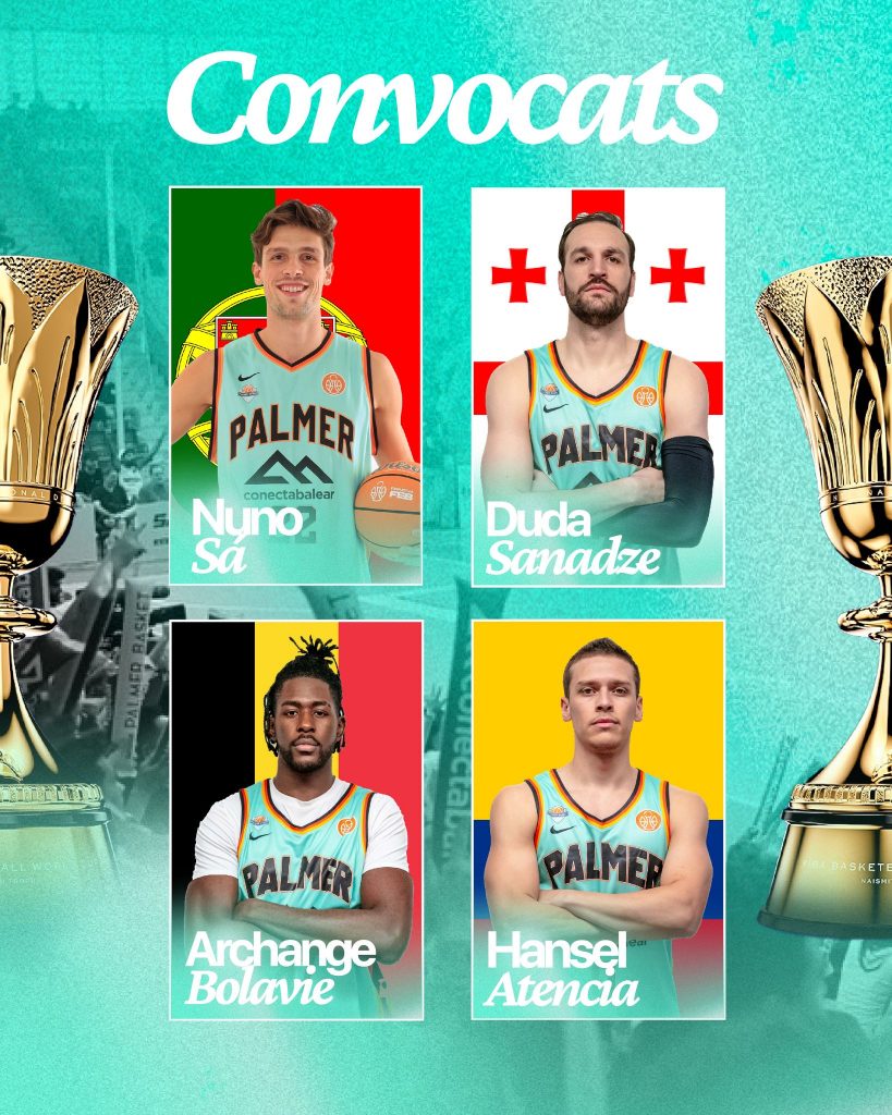 El Palmer Basket Mallorca Palma estará presente en los cruciales encuentros de clasificación para la Copa del Mundo 2027 de Catar. El cuadro turquesa cuenta con cuatro representantes en uno de los instantes de mayor exigencia y privilegio que un jugador puede afrontar. Hansel Atencia (Colombia), Duda Sanadze (Georgia), Nuno Sá (Portugal) y Archange Izaw-Bolavie (Bélgica) abordan una fase capital de la competición para mantener con vida el sueño de sus países.