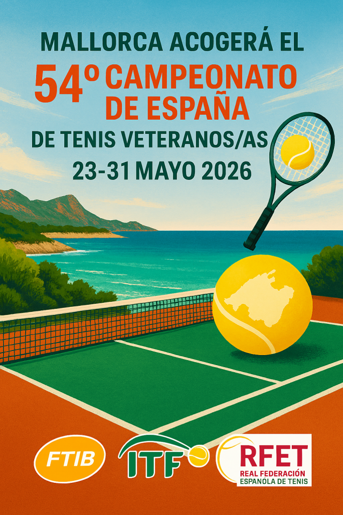 La Real Federación Española de Tenis (RFET) ha anunciado la celebración del 54º Campeonato de España de Tenis Veteranos/as Individual y Dobles, que tendrá lugar del 23 al 31 de mayo de 2026 en Mallorca. El torneo reunirá a jugadores y jugadoras de distintas categorías de edad y se disputará en tres sedes diferentes de la isla.