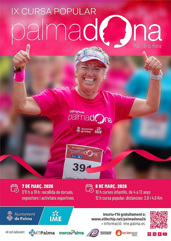 Todo lo que necesitas saber: 📅 Día: Sábado, 7 de marzo. 🕙 Hora de inicio: 10:30 h. 📍 Salida: Parque de la Riera, Palma. 👟 Recorrido: 5 km (Parc de la Riera-Parc de la Mar-Parc de la Riera)