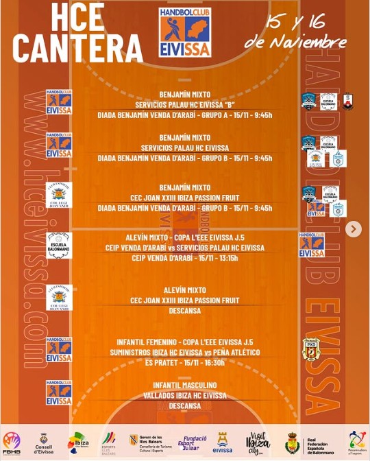 | Infantil Fem. | J.5 Copa | uministros Ibiza HC Eivissa vs Peña Atlético | 15/11 – 16:30h | Es Pratet |