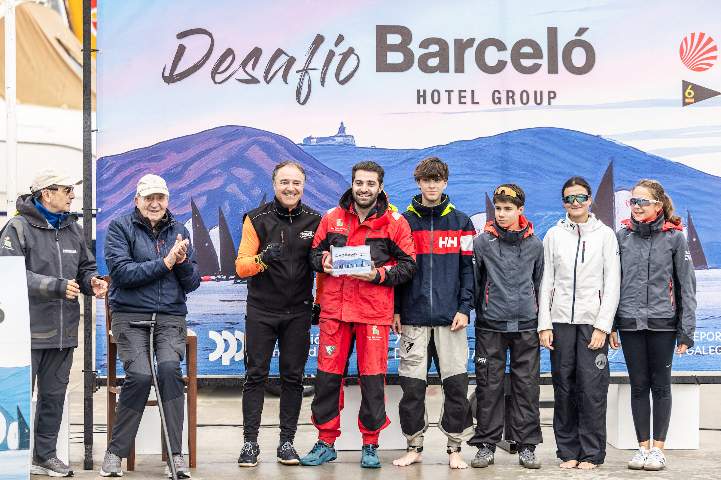 La entrega de premios del Desafío Barceló, presidida por el Rey Don Juan Carlos, se celebró al término de las pruebas en el varadero de Nauta Sanxenxo, en un ambiente cercano y con todas las tripulaciones de la clase 6 Metros que a lo largo de la temporada han navegado en el RCNS.