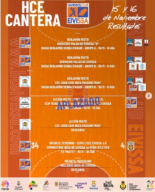 Resultados de la jornada del Club Handbol Eivissa del 15 y 16 noviembre