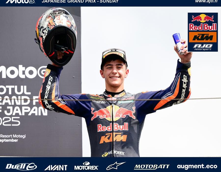 José Antonio Rueda terminó segundo en el Gran Premio de Japón, consiguiendo así su duodécimo podio de la temporada. El piloto del Red Bull KTM Ajo Moto3 tuvo una salida cautelosa en Motegi ante la lluvia, pero remontó posiciones al reaparecer el sol, acercándose a la victoria. Tras sumar 65 de los últimos 75 puntos, ahora necesita solo 7 más que su principal rival, Ángel Piqueras, en Indonesia para asegurar el título de Moto3 el próximo fin de semana en Mandalika. Su compañero de equipo, Álvaro Carpe, tuvo que conformarse con la 14.ª posición, tras una gran salida, aunque notó los inconvenientes de la lluvia en la pista.