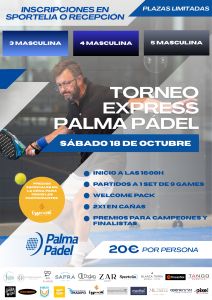 El sábado 18 de octubre disfrutaremos una tarde-noche llena de pádel: todo el torneo se juega en una sola jornada a partir de las 16:00hs.