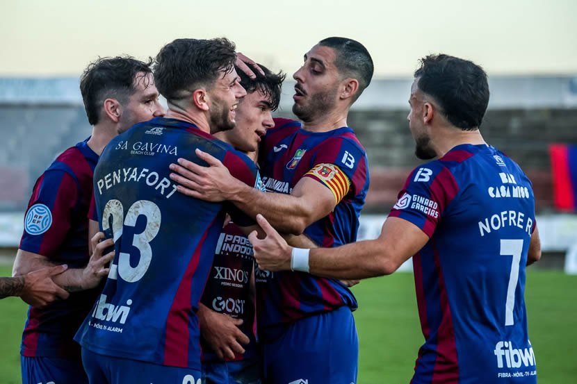 Nada más empezar el partido se sucedieron las ocasiones de gol por bando local, entre ellas Peñafort, Prohens, Martí, Payeras y Aitor desaprovecharon estas ocasiones en los primeros 30 minutos. Señalar que en el minuto 25 fue expulsado el jugador visitante Álvaro por doble amarilla. Fue a continuación en el minuto 38 cuando Prohens abrió el marcador en un remate de cabeza a centro desde la derecha de Fullana, 1-0; para a continuación el mismo Prohens fuera objeto de penalti por zancadilla de un rival dentro del área, falta máxima que ejecuta Fullana con seguridad y sitúa el 2-0 en el marcador en el minuto 43, resultado con el que se llegó al descanso.