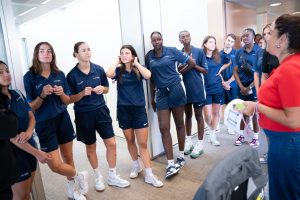 Las jugadoras y el staff de Azulmarino han conocido las oficinas de la empresa propietaria del club antes de iniciar el curso